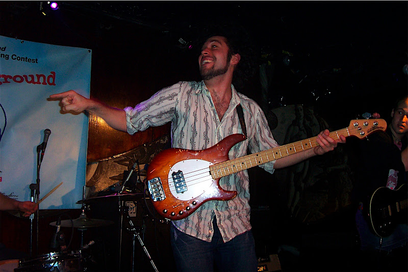 Kid:Nap:Kin. This was also their New York CD release party for their new album "Hush Now..." A 3-piece band from Boston, they were a high energy rock band with a hint of metal. I really liked lead singer Dan's voice. He sang in falsetto a lot but he actually pulled it off quite well, which is hard to do. And bass player Jamila was badass. I don't know why, but female bass players seem to always be so cool. Drummer Pat was good, and they had some great complex rhythms in some of their songs. Honestly I expected not to like them because metal-esque music isn't one of my favorite genres, but I found myself really getting into it. Their music is much more melodic than most metal, and they had a hint of funk at times. I suppose they aren't really all that metal-esque, besides the scream-singing. "Hush Now..." is a strong album. It's got a great energy. I can totally see myself popping this into the CD player of my car and speeding down the freeway, rocking out. If I had a car that is. I'm not much of a head-banger but I can't seem to help it listening to this album. My favorite track is the slightly funkier